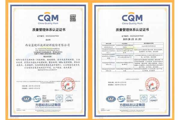 尊龙时凯人生就是搏官网z6mg科技在焦点质料立异、新兴应用领域拓展、专业化销售与服务等方面具有综合的手艺优势,焦点手艺所有为自主知识产权,拥有中国专利59 项,其中发明专利50项,以及国际专利授权6项。2次荣获国家科技前进二等奖,完成科技部立异基金2项,获得国家重点新产品3项。尊龙时凯人生就是搏官网z6mg科技先后通过GB/T 19001-2016/ISO 9001:2015 质量管理系统认证和GB/T 24001-2016/ISO14001:2015 情形管理系统认证、GB/T 45001-2020/ISO 45001:2018职业康健清静管理系统认证、GB/T 23331-2020/ISO 50001:2018能源管理系统认证、GB/T23001-2017信息化和工业化融合管理系统,并拥有WQA金印、Kosher、FDA注册、CE、REACH等国际资质,确保向客户提供优质稳固的产品。公司生产的吸附疏散质料包括30多个系列100多个品种,普遍用于食物、制药、植物提取、离子膜烧碱、环保、化工催化、湿法冶金、水处置惩罚等工业领域,市场笼罩全球100多个国家。